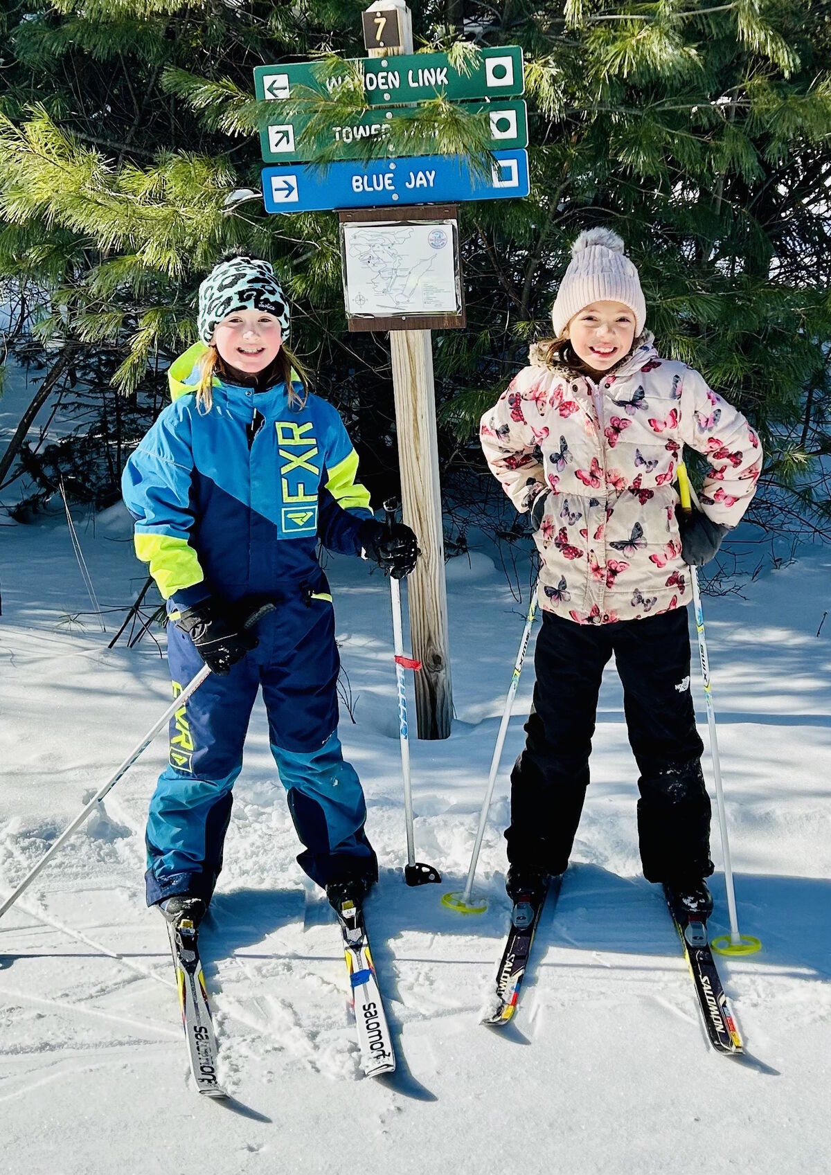 Alison Forbush and Zinnia Corrigan are enjoying learning to XC ski.
